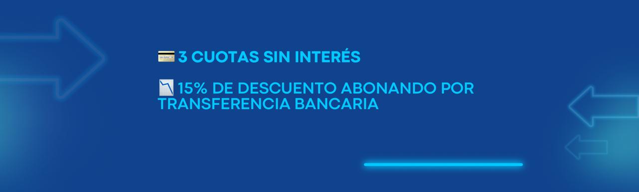 💰 DISFRUTÁ DE NUESTROS BENEFICIOS: 15% DE DESCUENTO ABONANDO CON TRANSFERENCIA Y 3 CUOTAS SIN INTERÉS 🎉